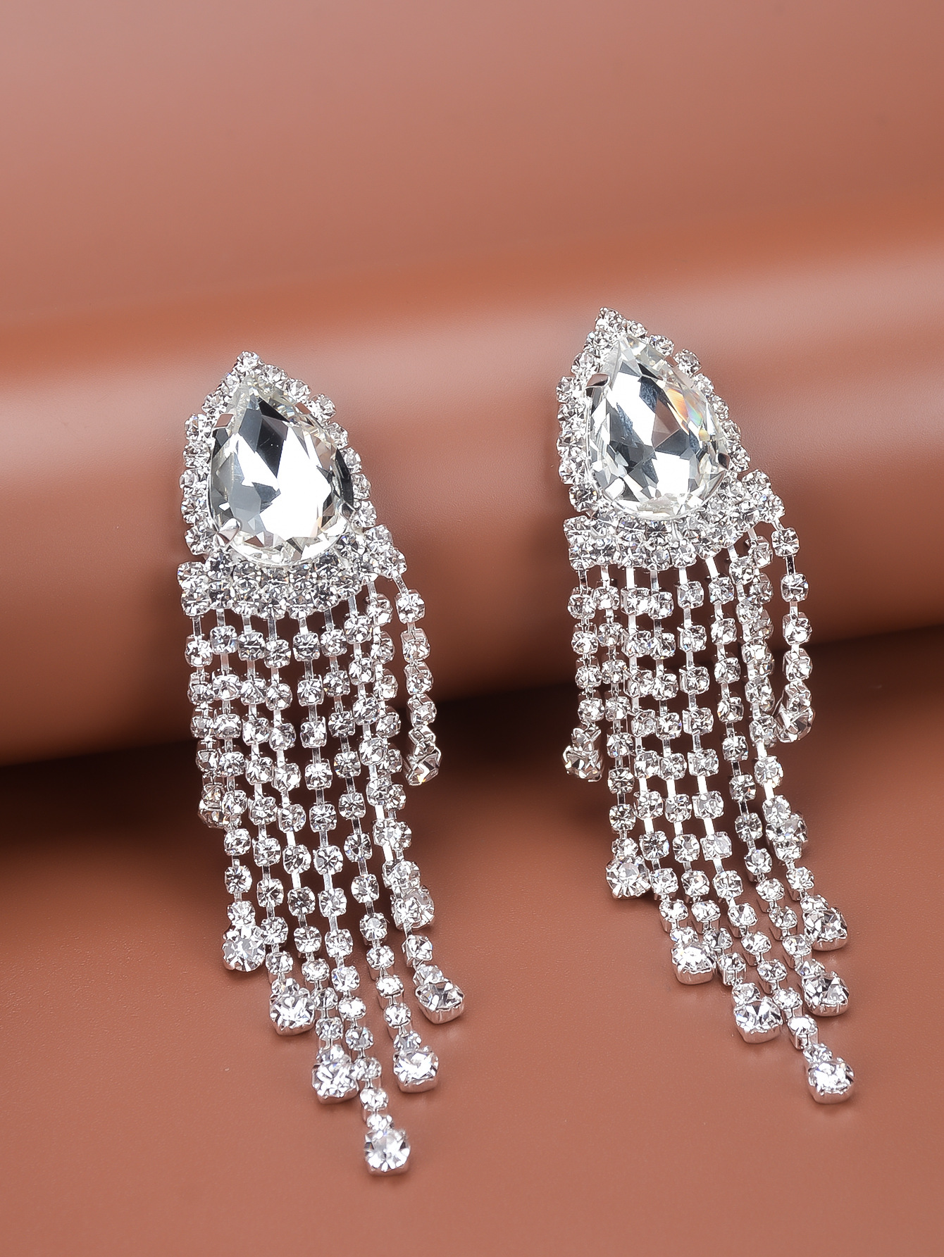Rhinestone Tassel Earrings Big-name Drop-shaped